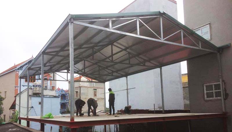 Thi công mái che sân thượng bằng tôn cán sóng